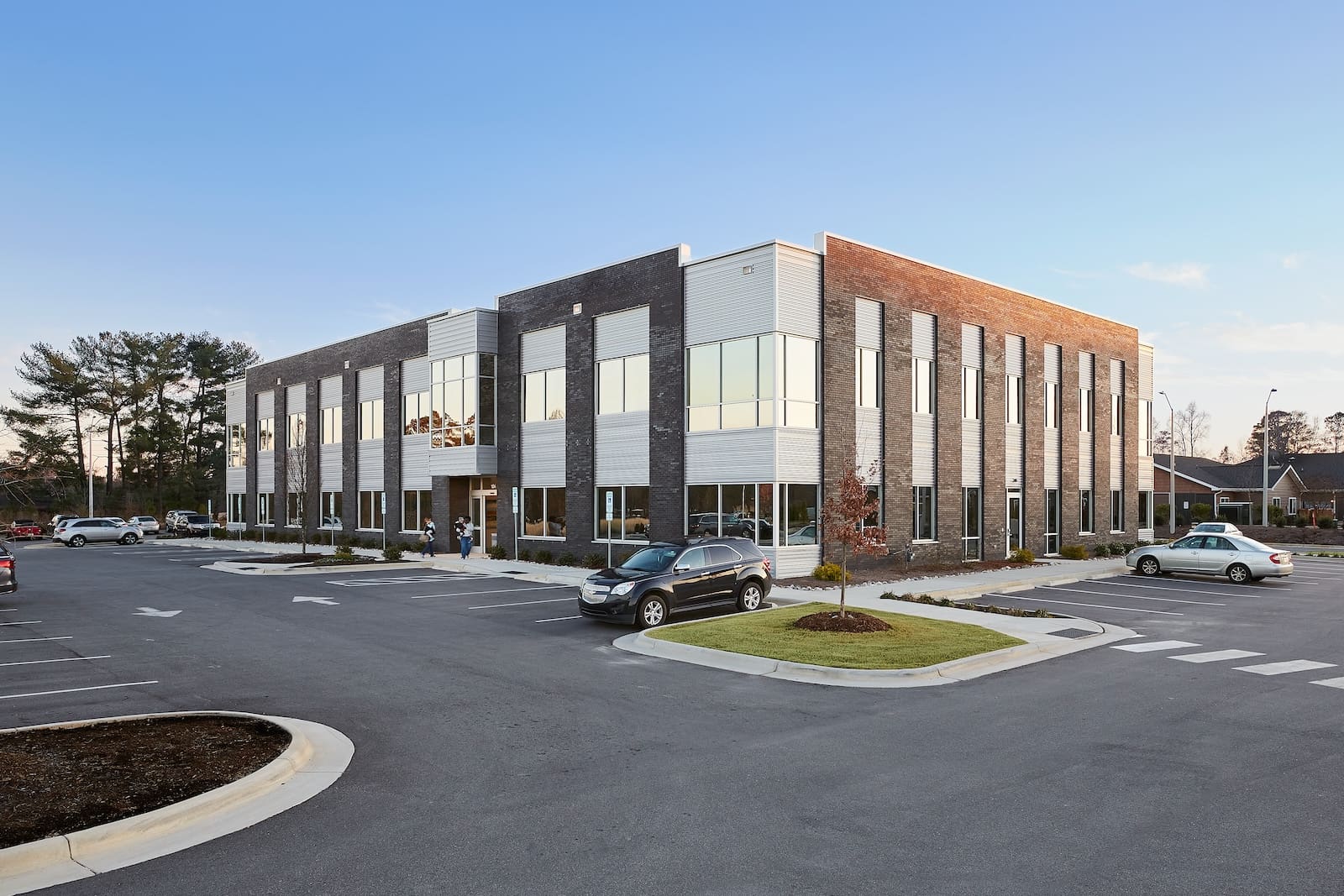 This medical office building accommodates two established pediatric and outpatient rehabilitation practices and a local corporate office for the project development team. Exterior materiality are purposefully distinctive from the surrounding built context.