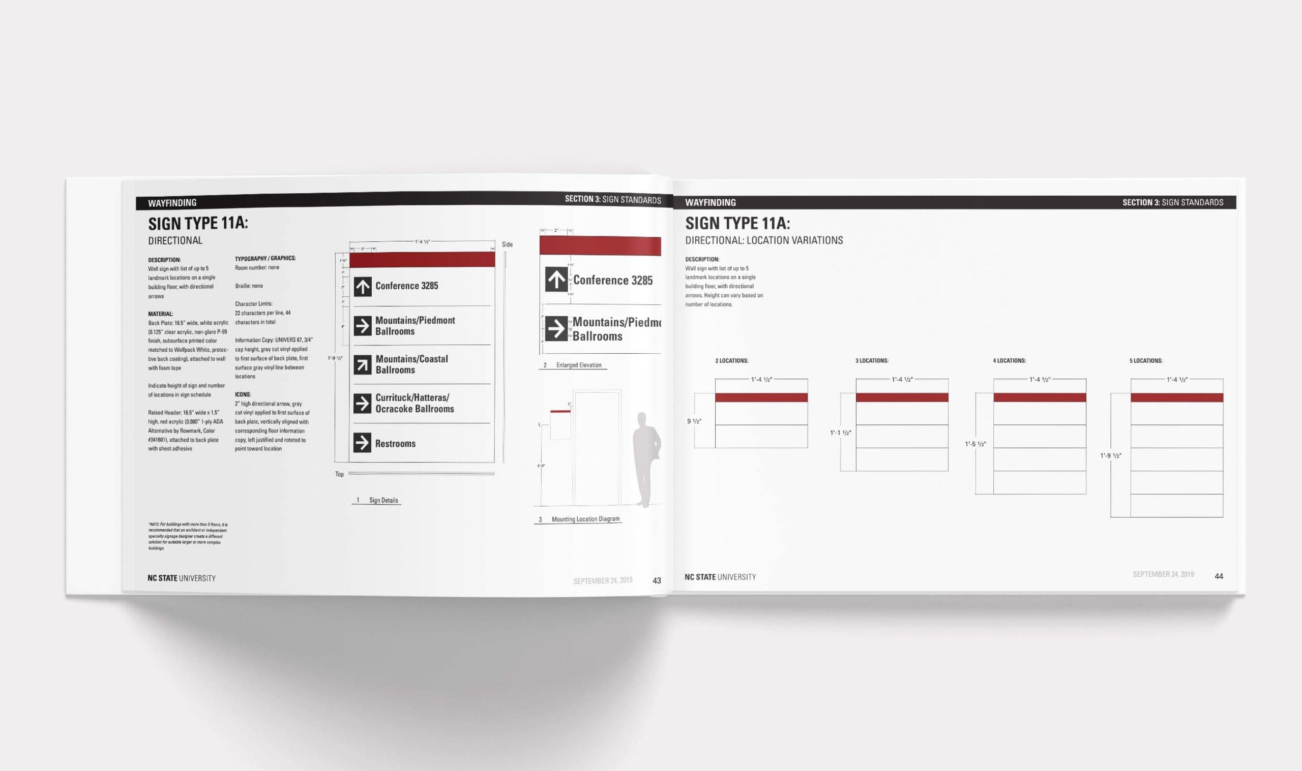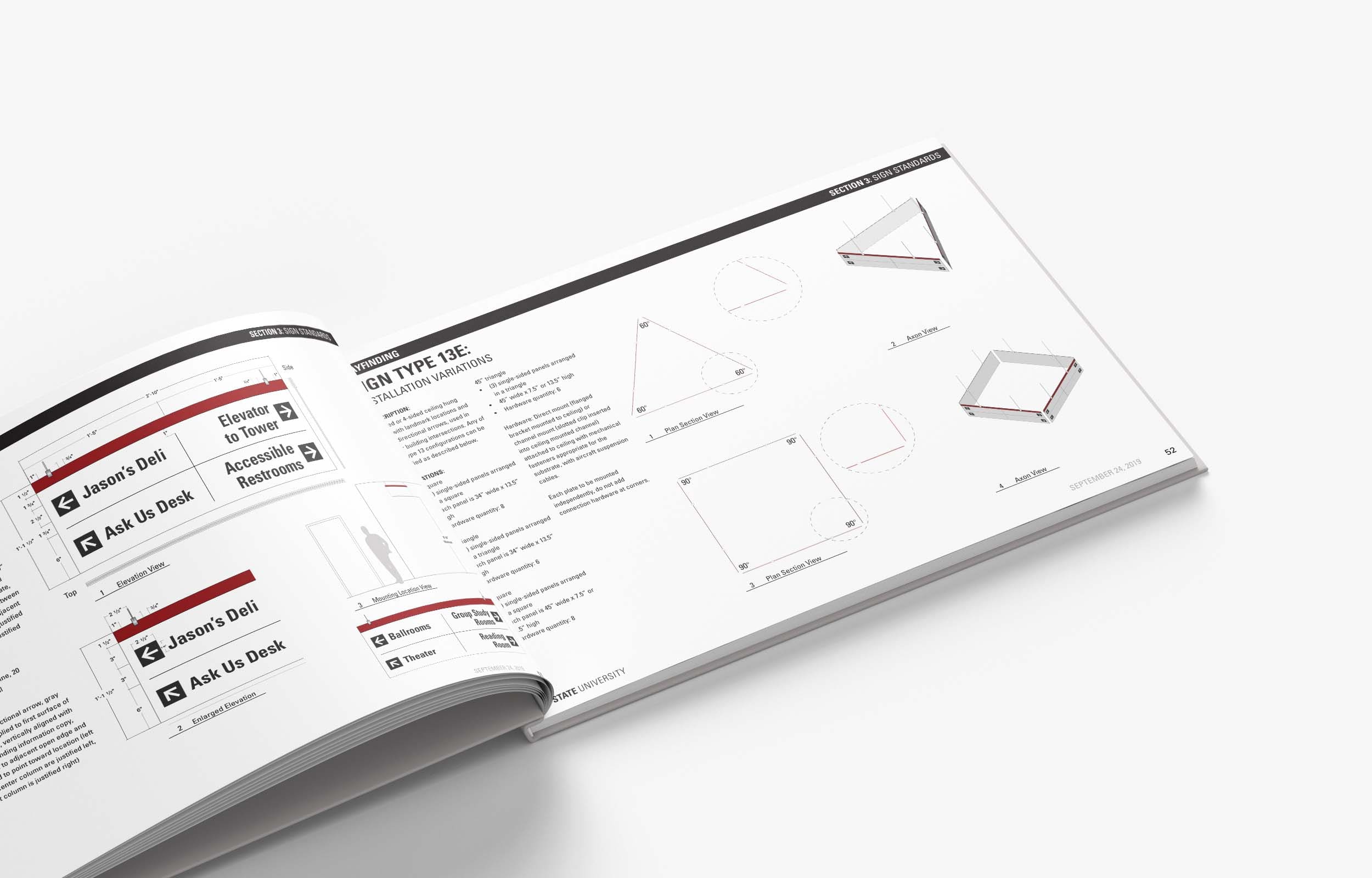 The new signage manual reconciles a campuswide misalignment of standards across campus into a recognizable cohesive graphic system. The fabrication and installation methods outlined streamline previous methods in addition to meeting visual and tactile compliance standards.