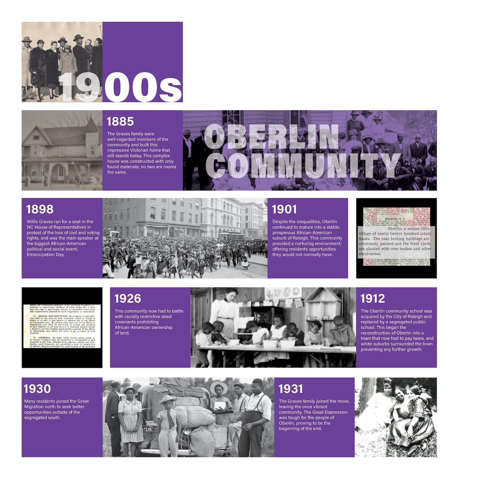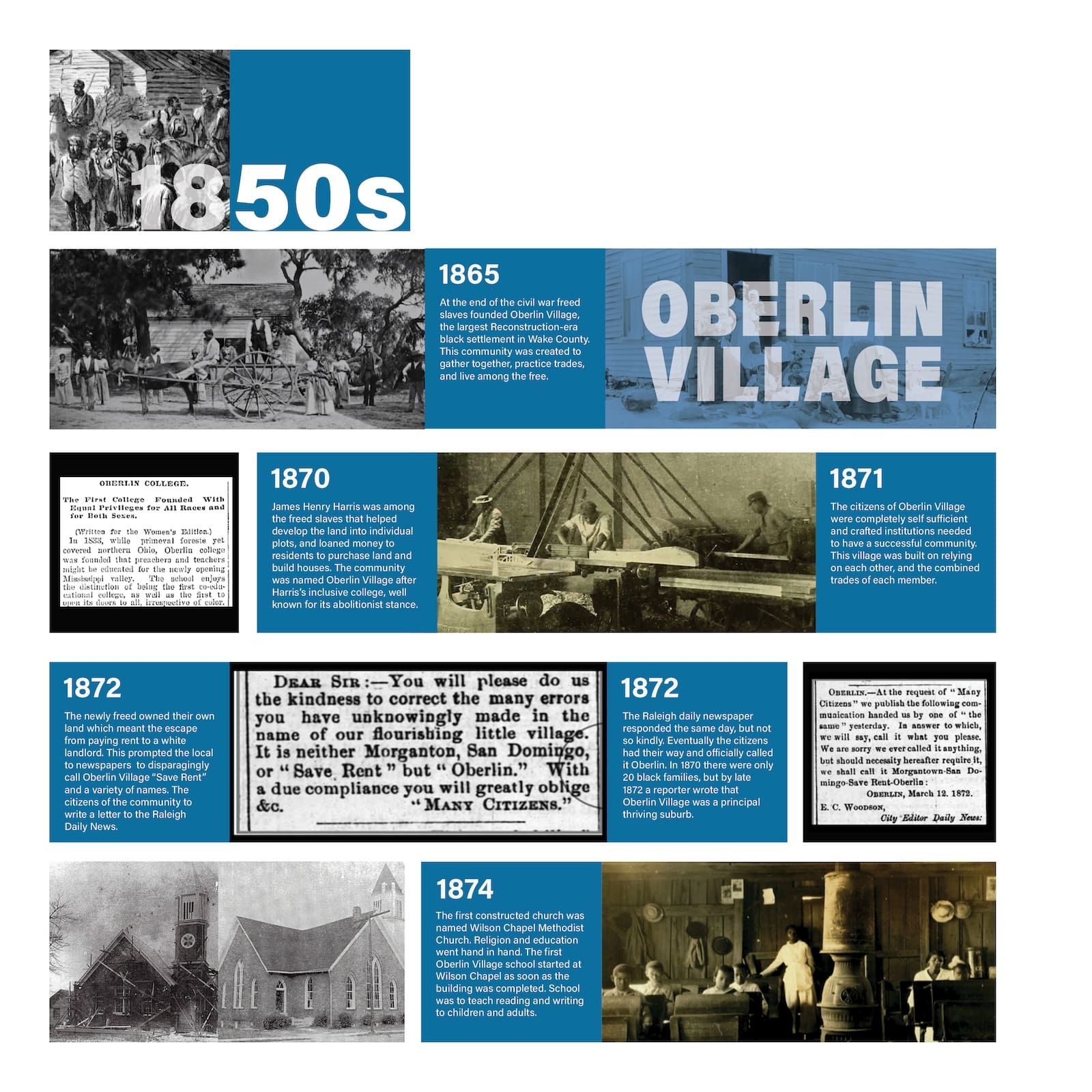 Historic Oberlin Village, a significant and once vibrant reconstruction-era black settlement is memorialized for students and visitors in a series of graphic exhibits displayed in its namesake middle school. The panels educate students and families about the contributions and lasting impacts its citizens have continued to impart on the region.