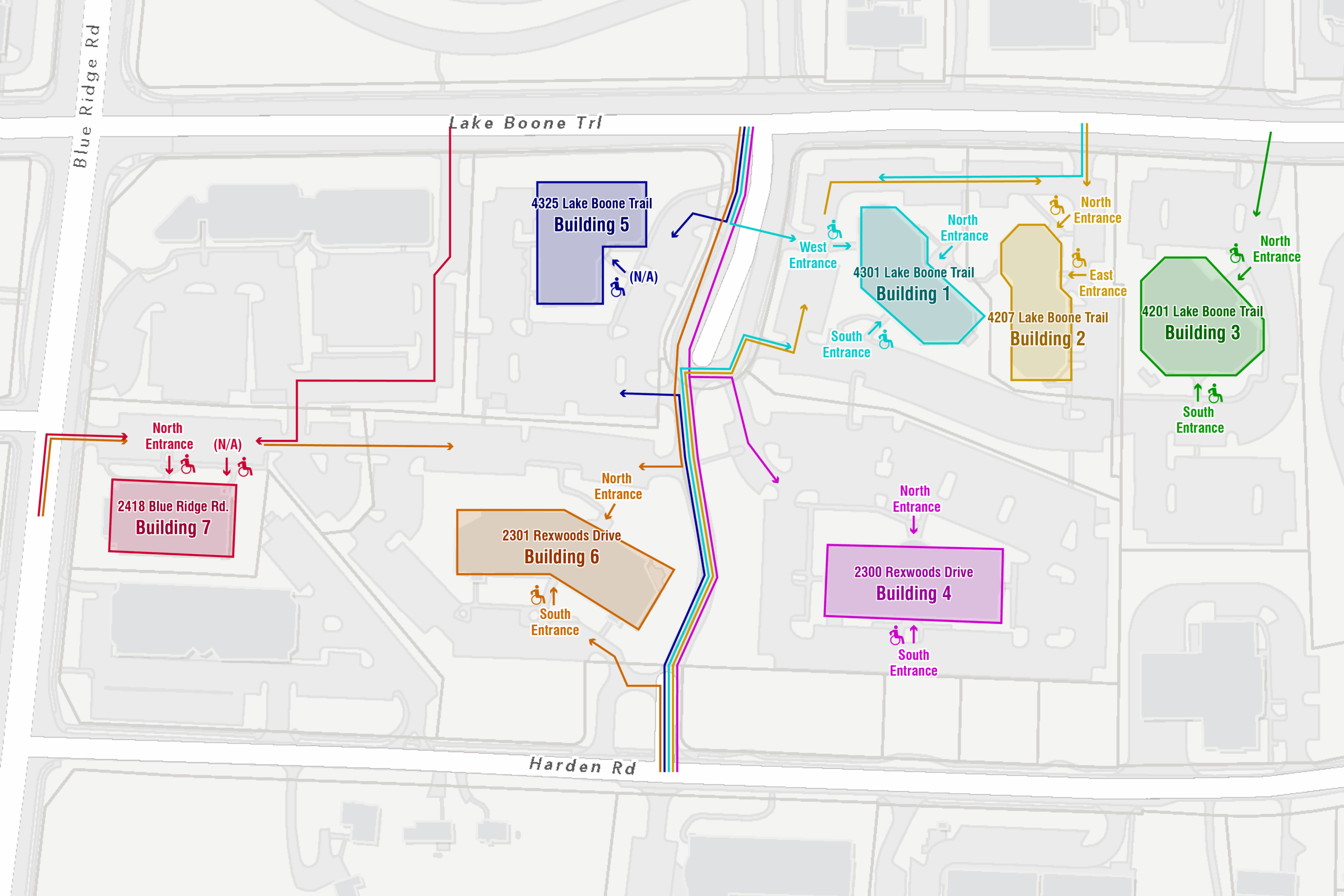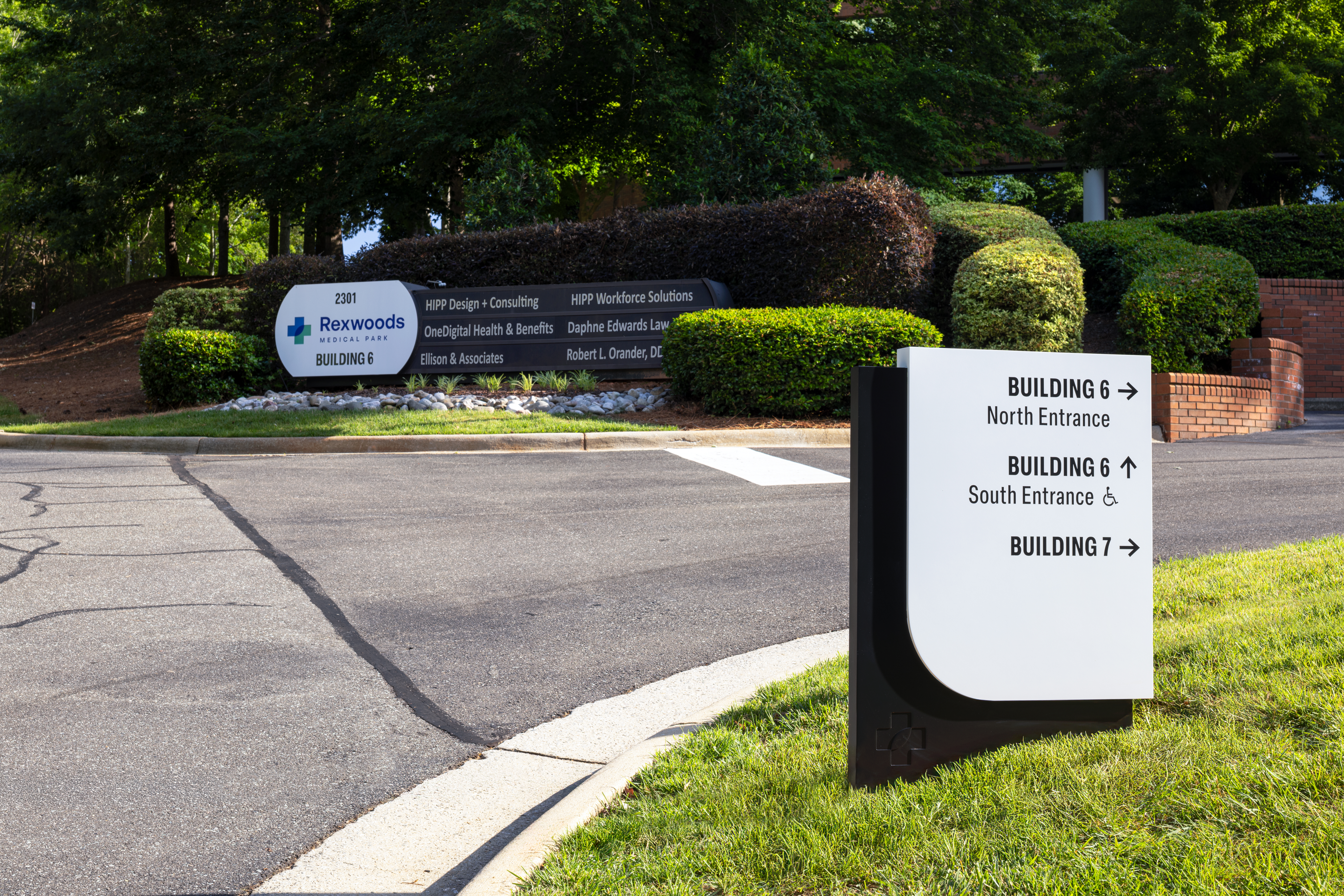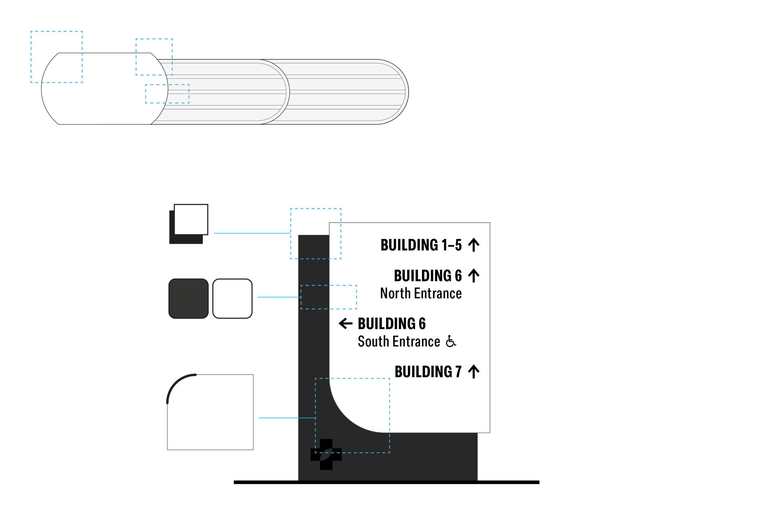 To unify a fragmented healthcare environment, this campus-wide wayfinding strategy transforms how patients, visitors, and staff navigate the site. The system resolves a network of disconnected building identities, conflicting signage, and competing points of entry.